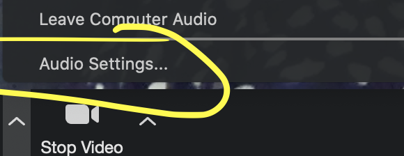 1. First, go to the audio settings via the arrow next to the ‘Mute’ button.