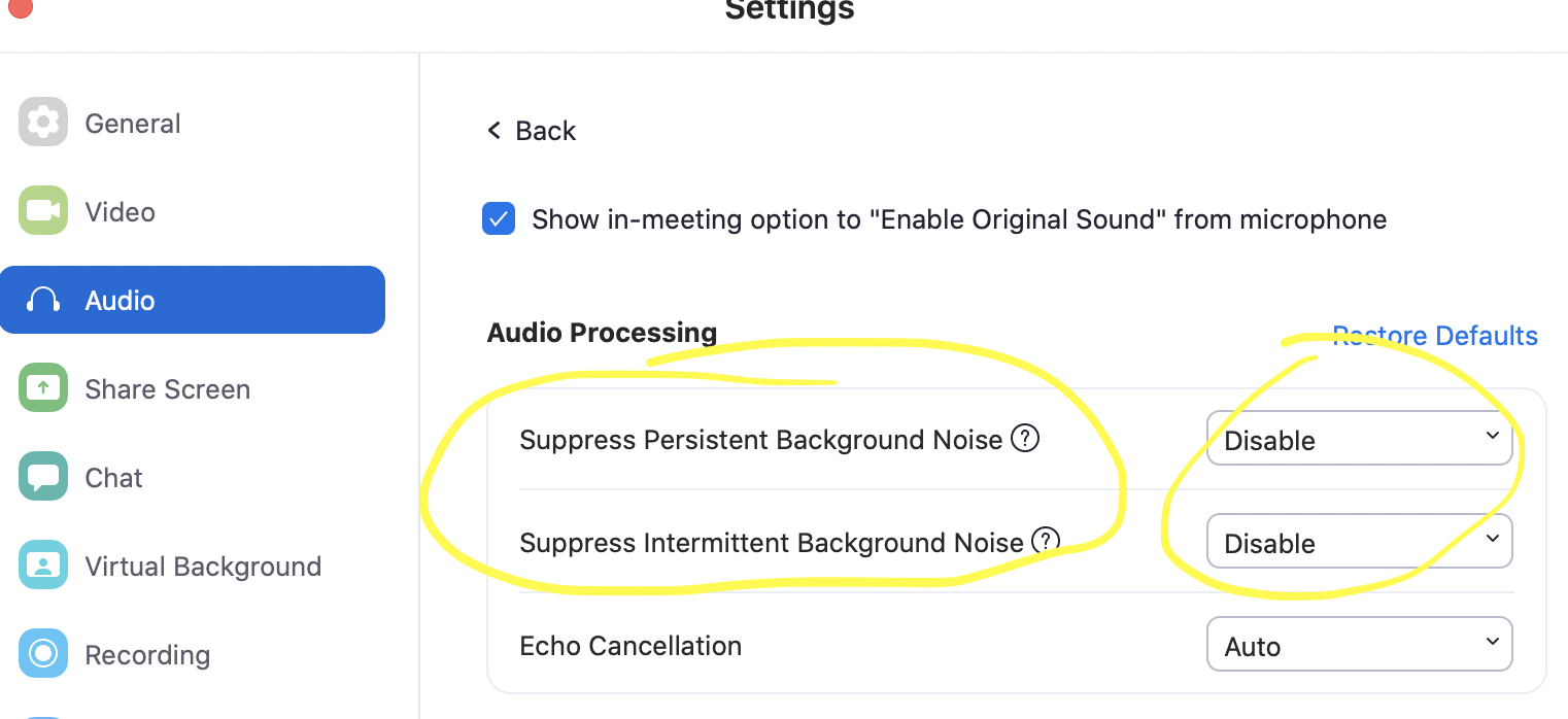 6. Be sure to choose “Turn on Original Sound” when you return to a meeting.